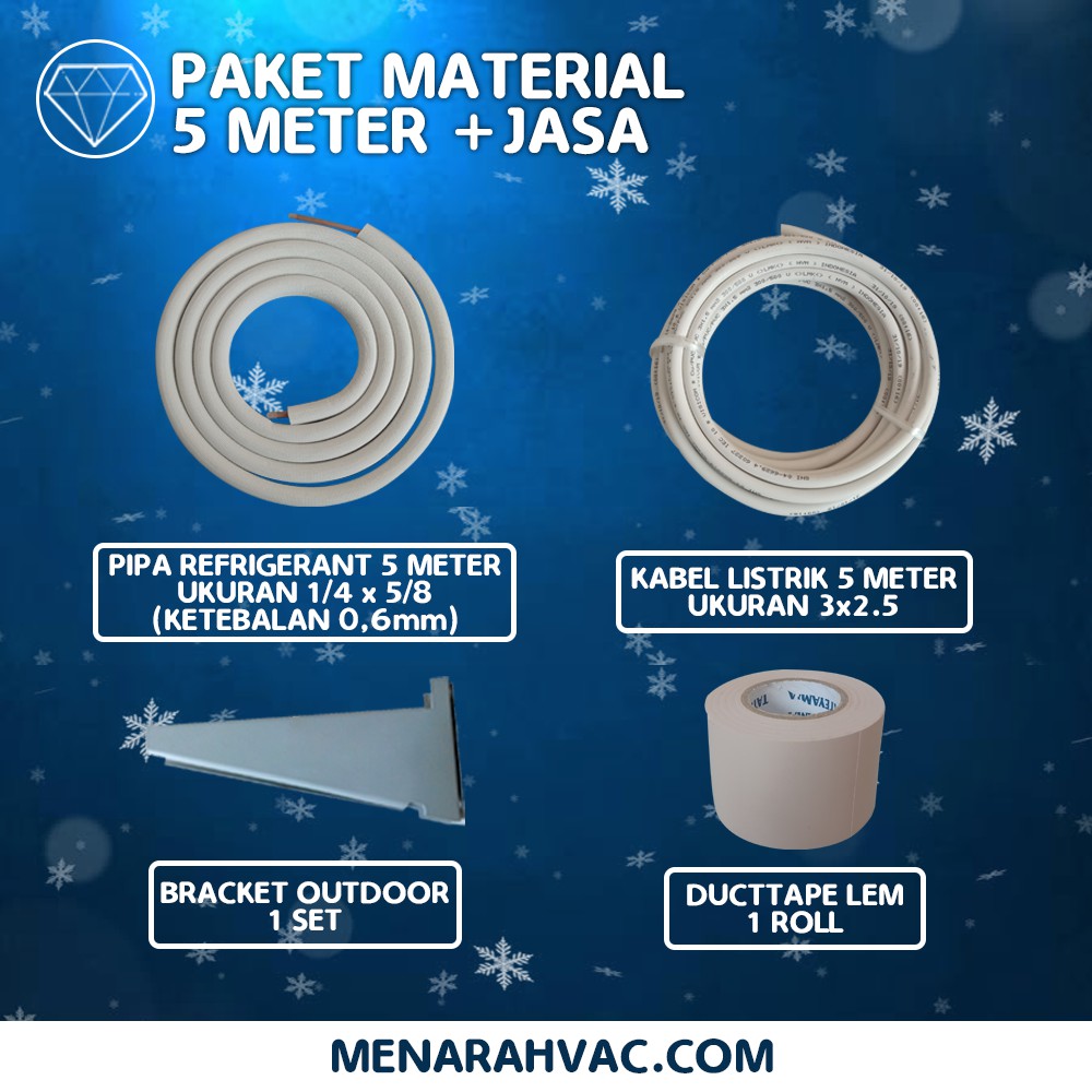 2. Material Pipa Refrigerant 5 Meter ukuran 1/4” x 5/8” (ketebalan minimal 0,6 mm).
