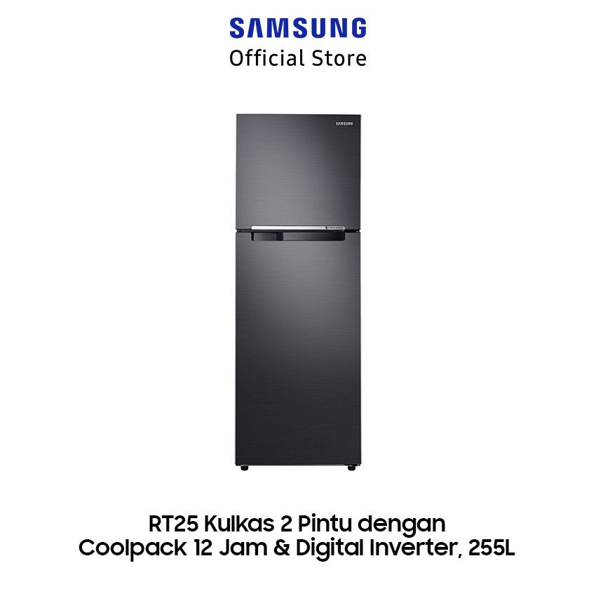 | Produk | [ONLINE EXCLUSIVE] Samsung Kulkas 2 Pintu dengan Coolpack 12 Jam 255L – RT25FARBDB1/SE |