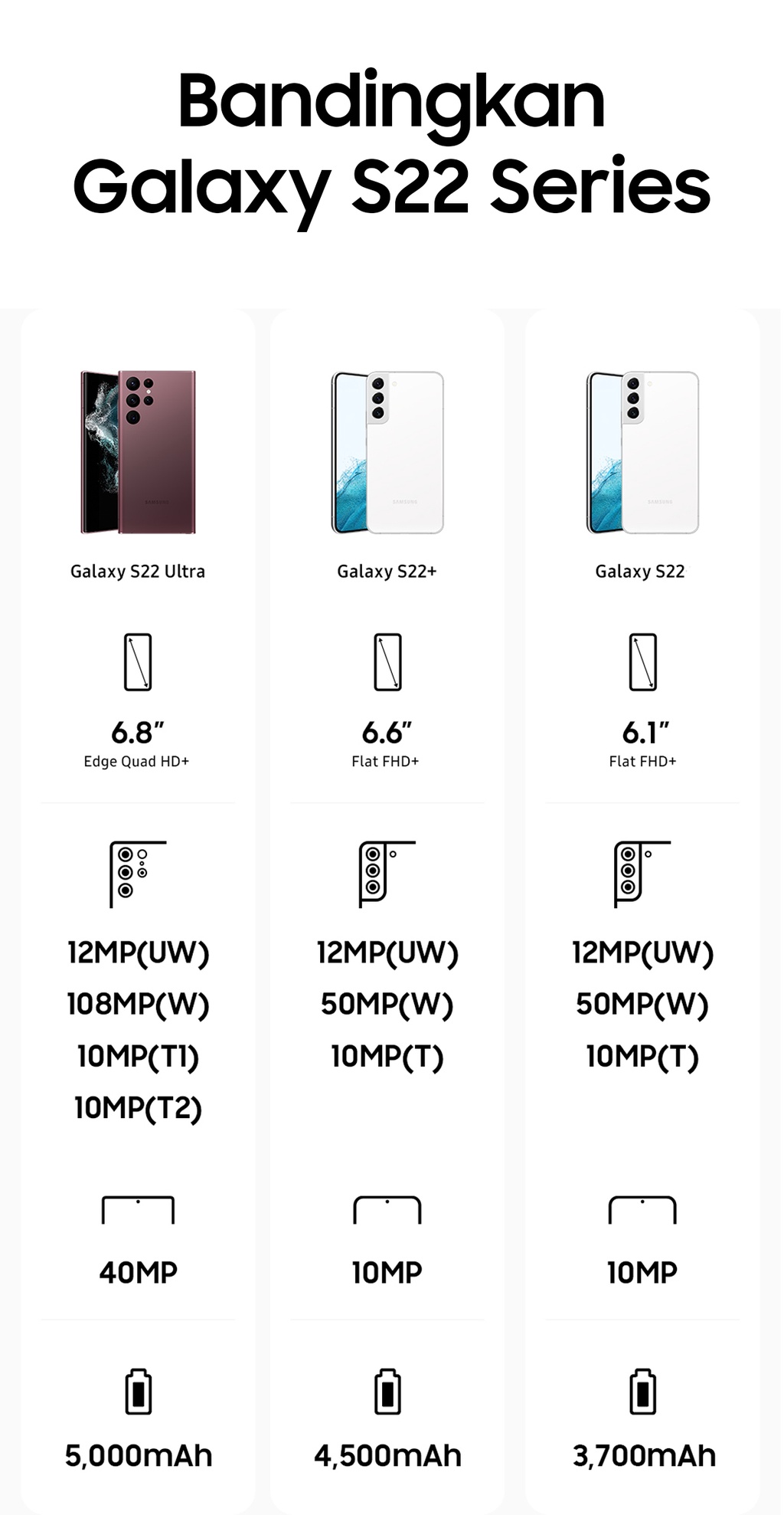 | Deskripsi | Processor: Snapdragon 8 Gen 1Display: 6.1″ Dynamic AMOLED 2X FHD+Rear Camera: 50 MP + 12 MP + 10 MPFront Camera: 10 MPRAM: 8 GBInternal Storage: 256 GBNetwork: 5GBattery: 3.700mAh |