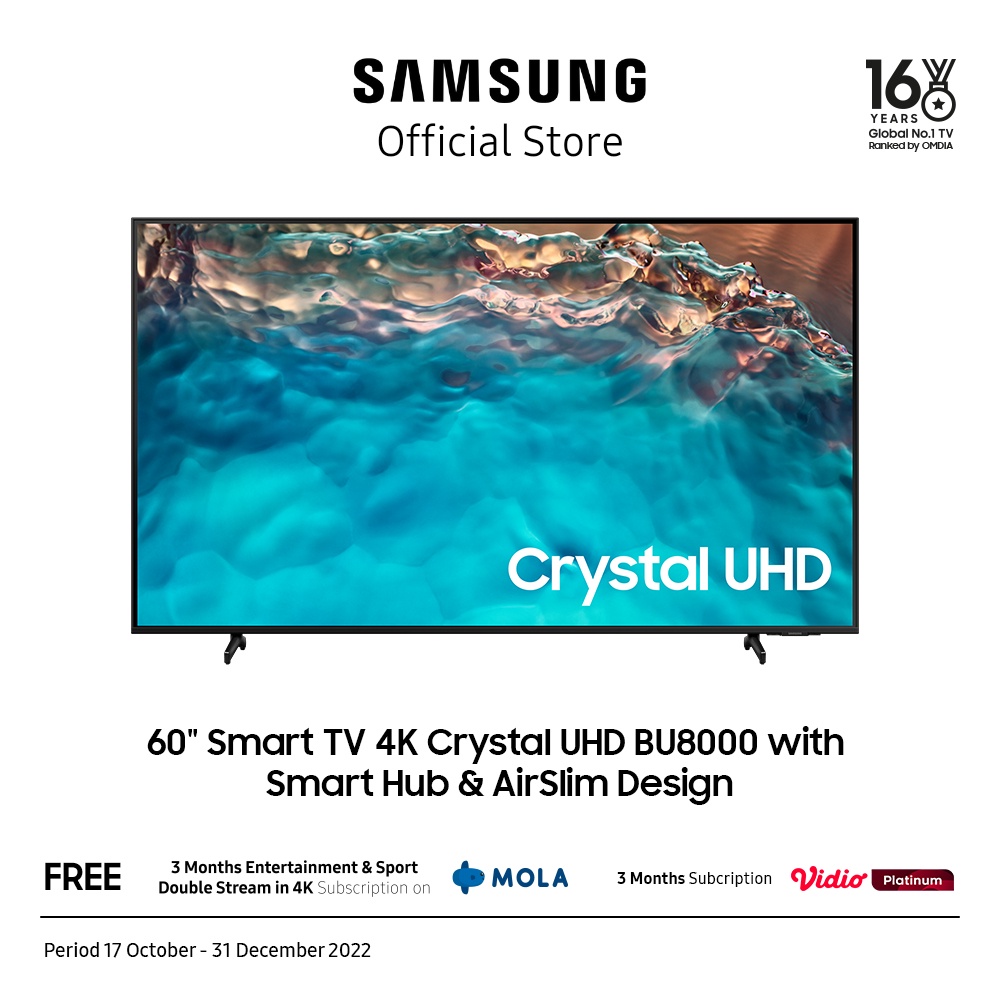 Samsung 60" Smart TV 4K Crystal UHD BU8000 dengan Smart Hub & AirSlim Design