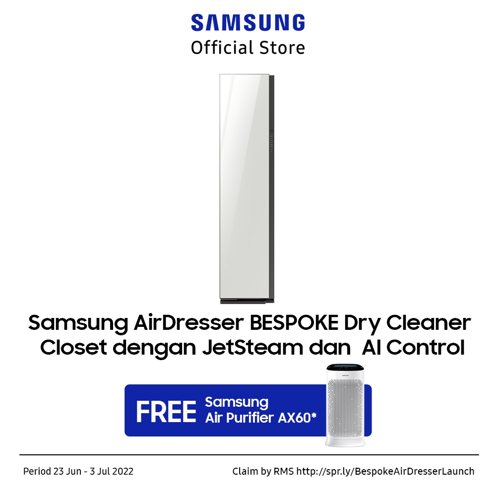 | Produk | Samsung AirDresser BESPOKE Dry Cleaner Closet dengan JetSteam dan AI Control DF60A8500WG |