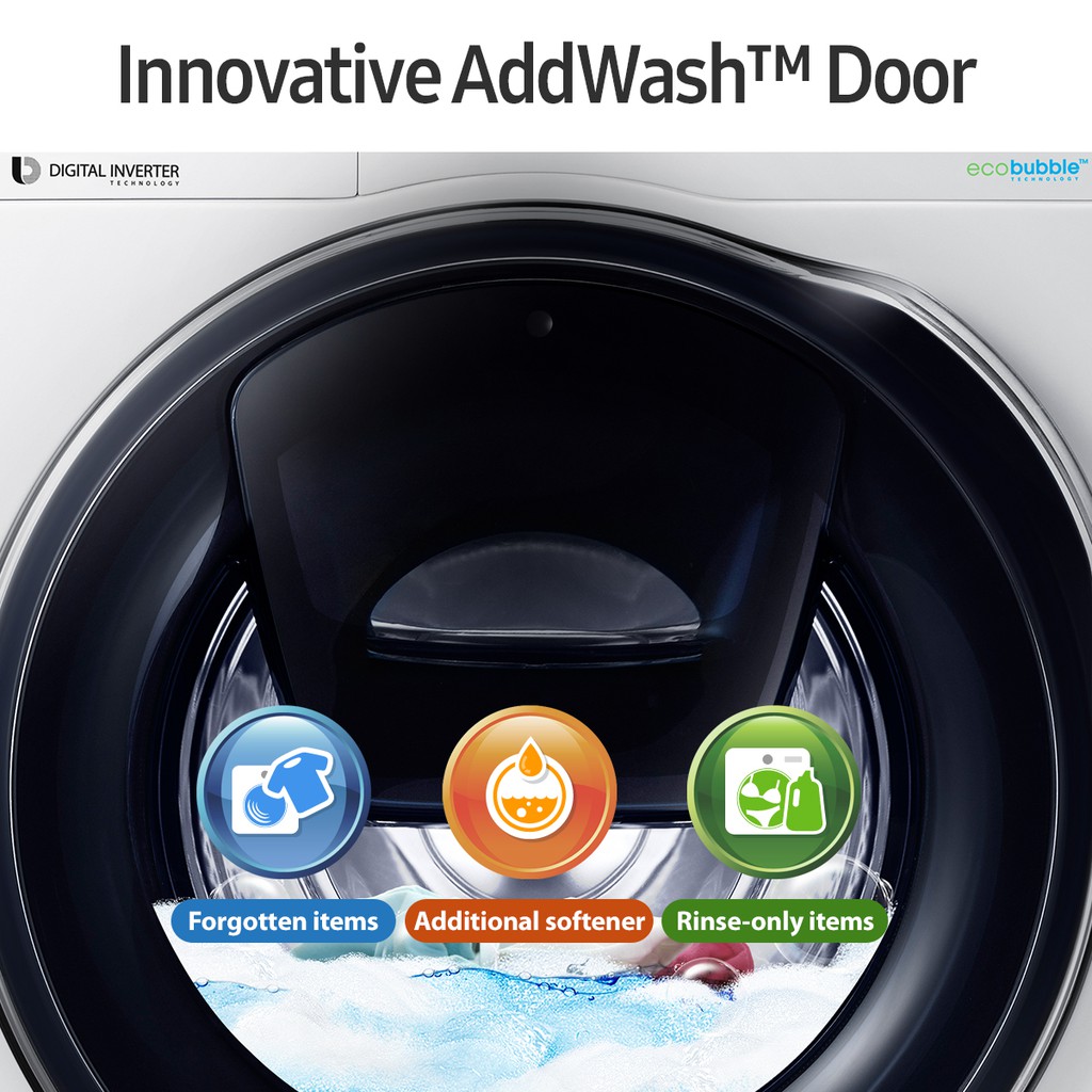 | Deskripsi | Powerful bubbles, outstanding cleaning Save money and protect the color and texture of your clothes.Eco Bubble delivers a powerful, but gentle cleaning performance.Detergent is turned into bubbles, so it quickly penetrates fabric and removes dirt easily.It means it washes just as effectively in cool water(15°C) and uses less energy. Intensive Stain Removal Keep your clothes looking spotless, however dirty they get. With the touch of a button the Bubble Soak function helps remove a wide variety of stubborn stains, like blood. Clothes are thoroughly soaked in active bubbles, so any dirt and stains are loosened and can be removed much more effectively*. Works smart. Stays young Digital Inverter Technology utilizes strong magnets for a quieter and more powerful performance, but consumes less energy than a Universal Motor. By eliminating the use of brushes, it provides outstanding durability* backed-up by a 11 year warranty Color: Da White |